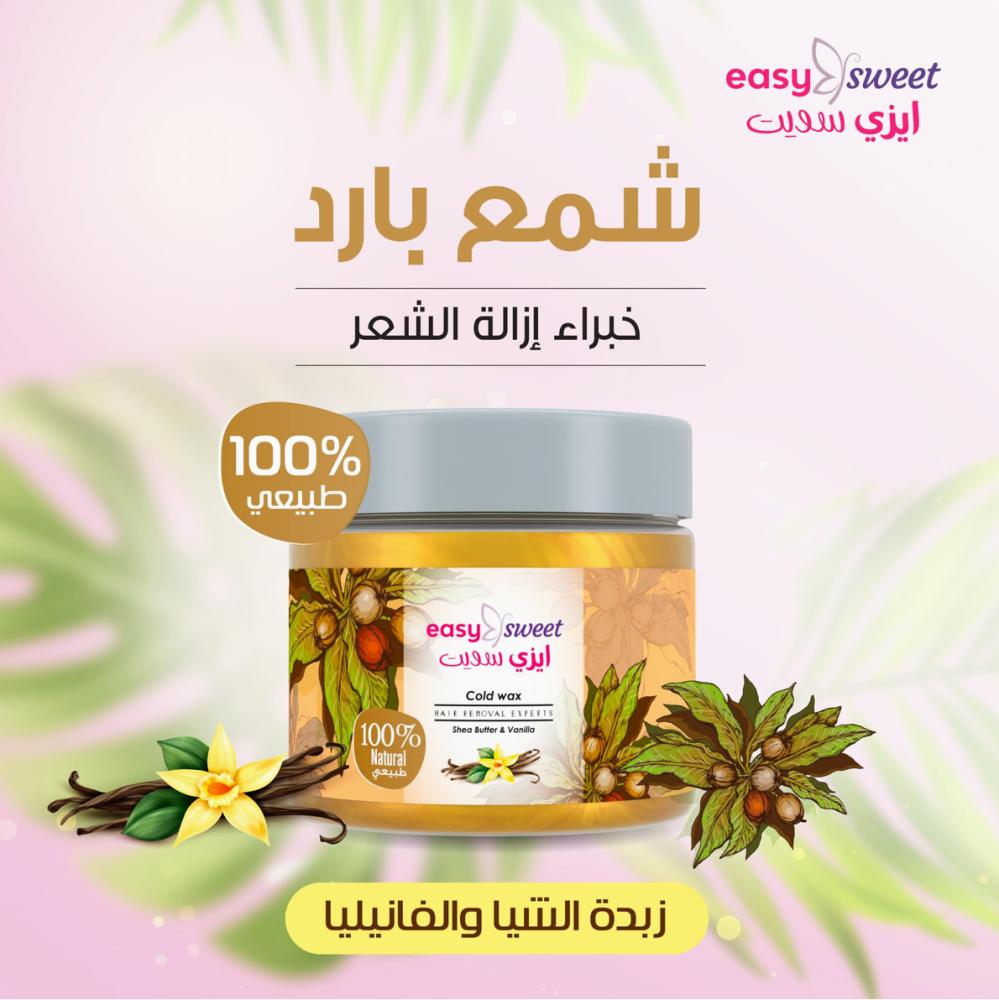 - مكونات طبيعية تمامًا: مصنوع من مكونات طبيعية 100%، هذا الشمع البارد سهل التوزيع من ايزي سويت يوفر حلاً لطيفًا على البشرة لإزالة الشعر.