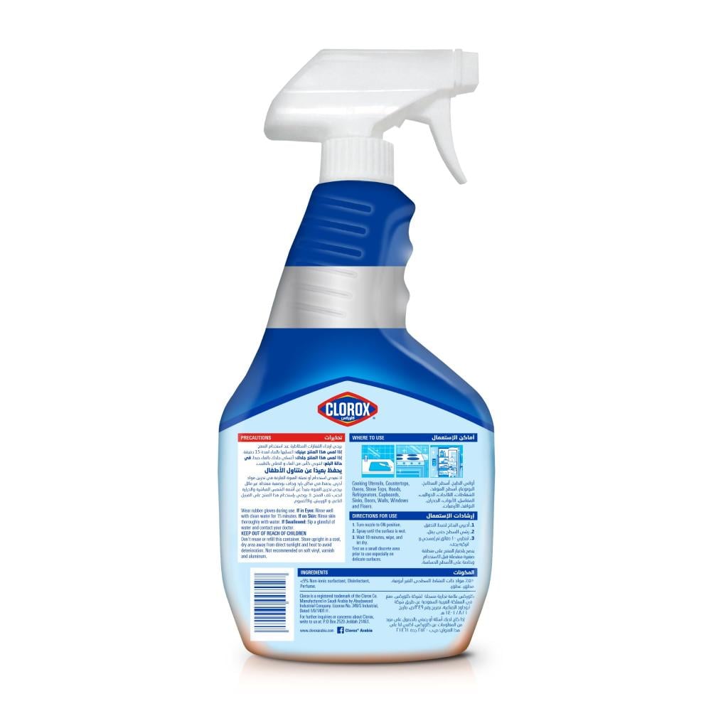 - بخاخ منظف للأسطح المتعددة حول المطبخ: احصلي على مطبخ نظيف باستخدام منظف المطبخ من كلوركس: أواني الطبخ، والأسطح، والأفران، وأسطح المواقد، والأغطية، والثلاجات، والخزائن، والمغاسل، والأبواب، والممرات، والنوافذ والأرضيات