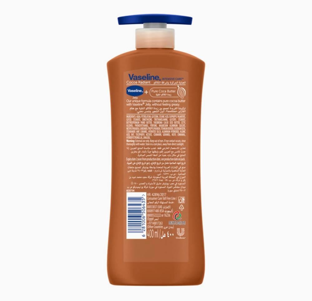 - يُرطب لوشن العـناية المركزة الغني بزبدة الكاكاو من فازلين البشرة الجافة
