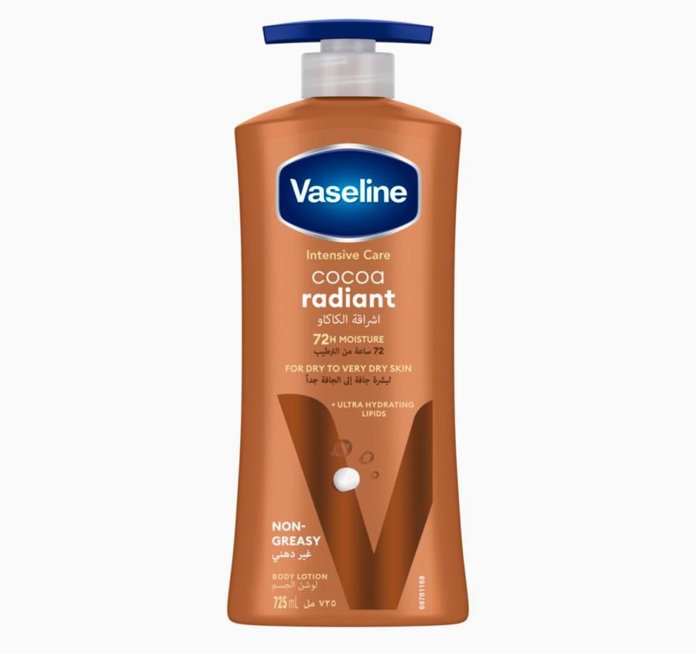 • يُرطب لوشن العـناية المركزة الغني بزبدة الكاكاو من فازلين البشرة الجافة