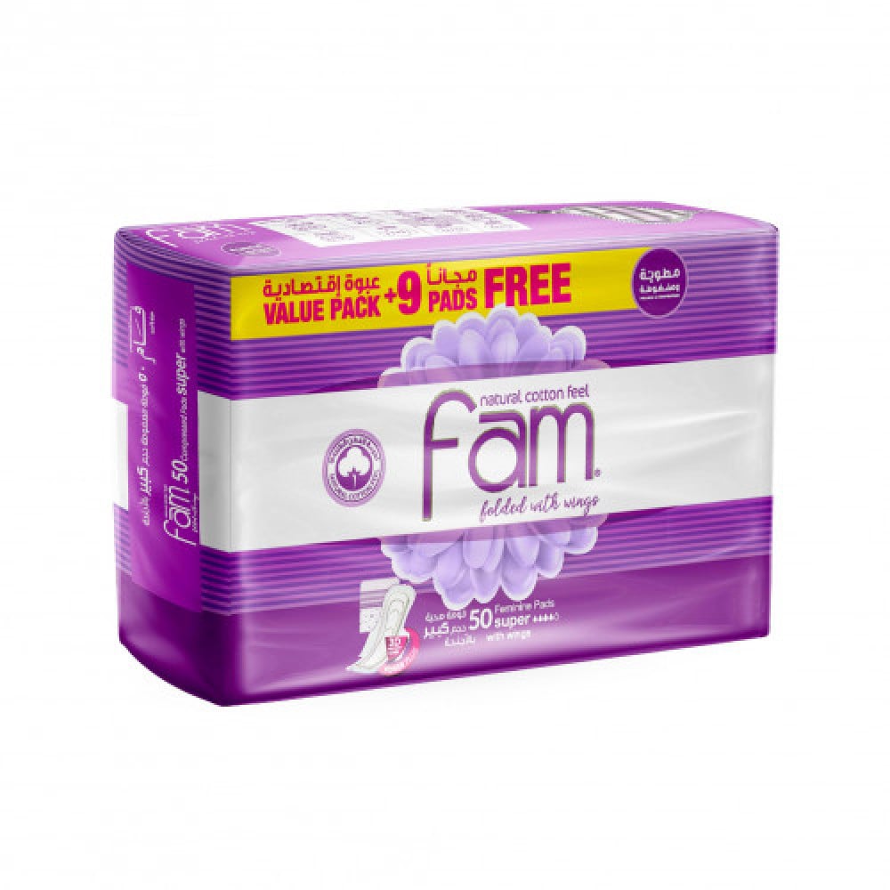 فام ماكسي الفوطة الصحية المطوية بالأجنحة - سوبر 50 فوطة
